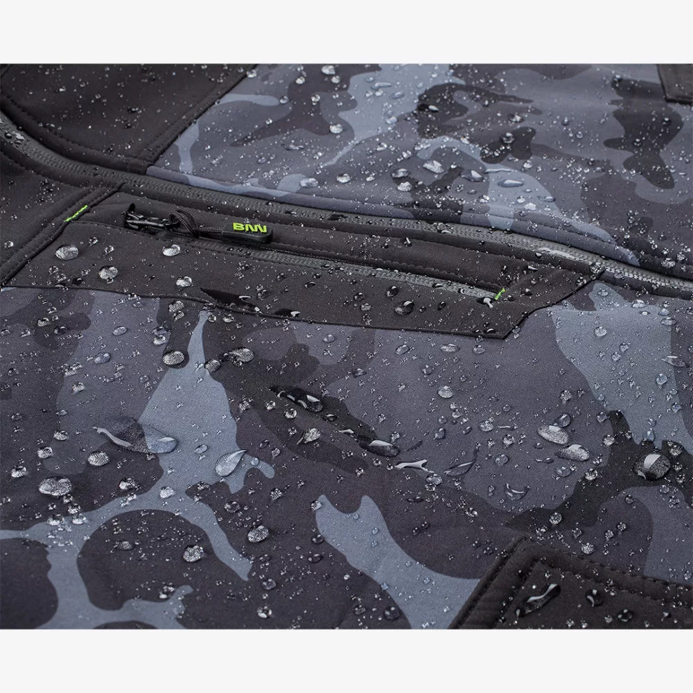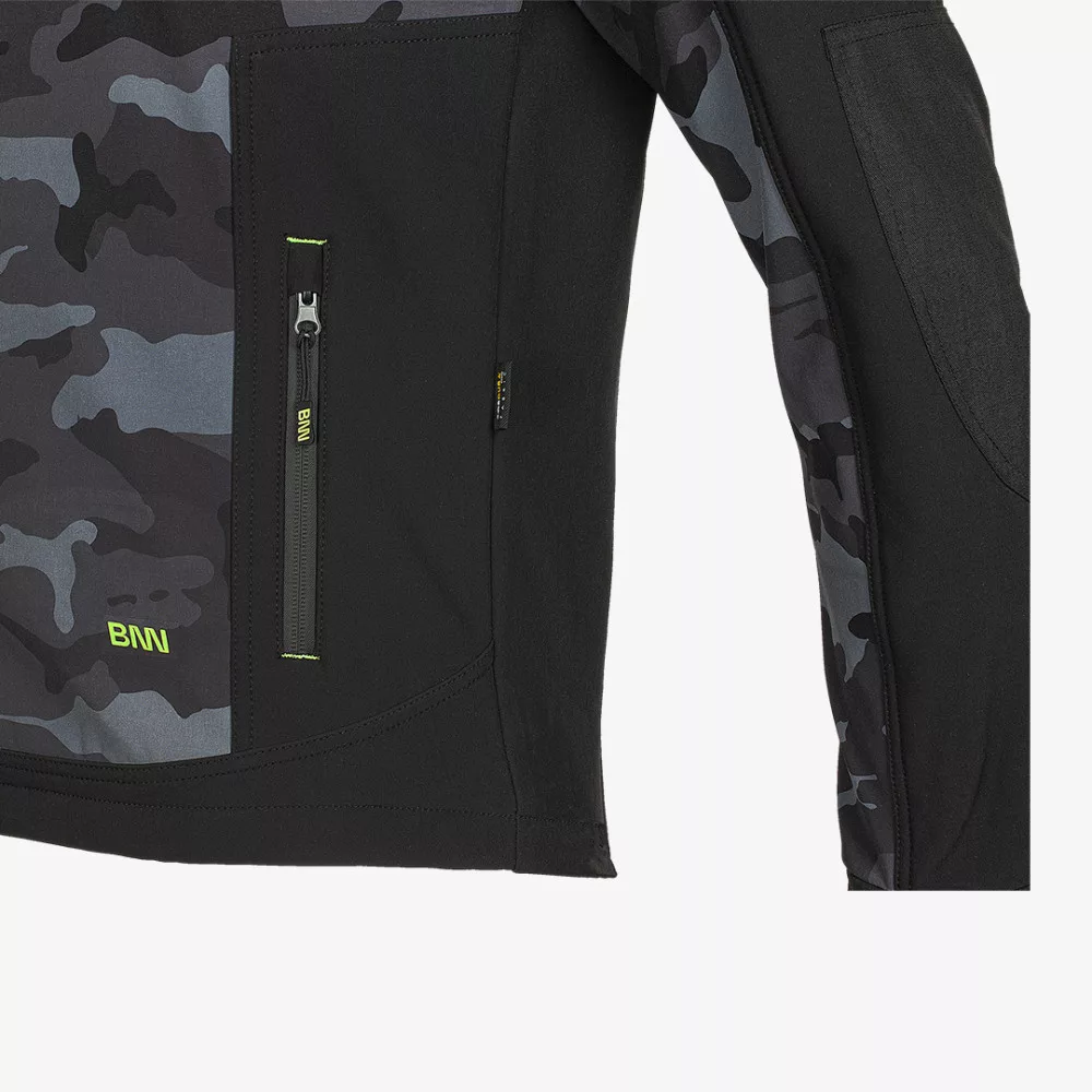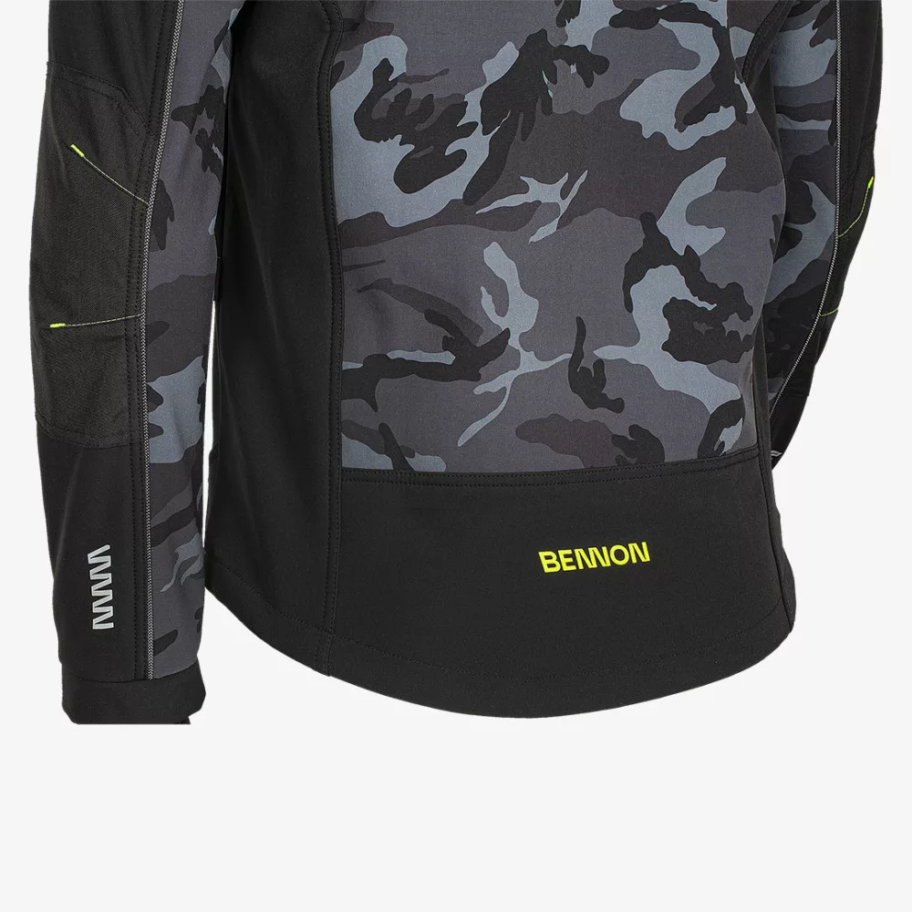 Modern, terepmintás dizájnú, szélálló softshell alapanyagból készült Bennon kabát, hűvösebb időjárási körülményekhez.