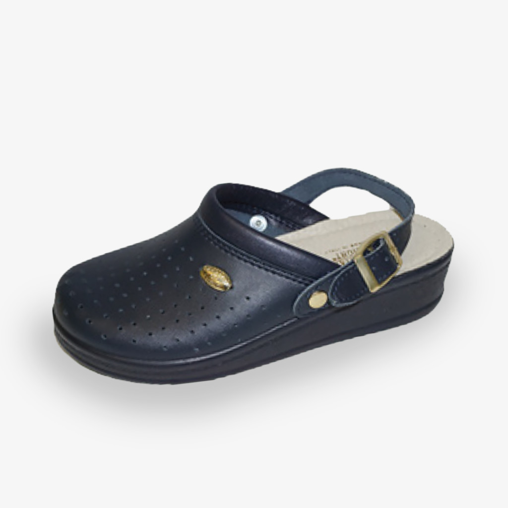 Hátsó pántos kialakítással rendelkező, puha bőr felsőrésszel készülő Sanital Light női klumpa, kiemelkedő kényelmet biztosító anatómiai formázású bőr talpbetéttel és ütéselnyelő talppal. Tökéletes mindennapi viseletnek is.