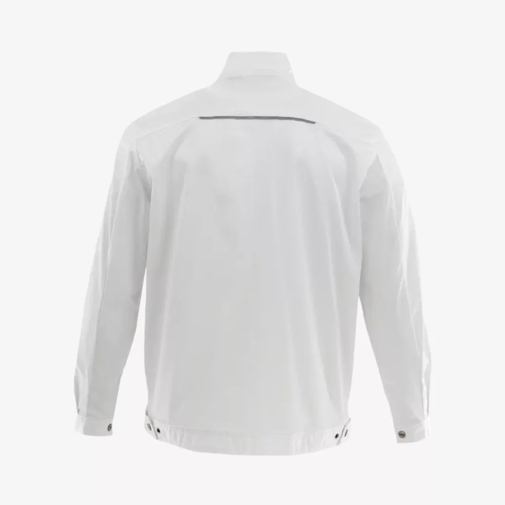 Modern megjelenésű, strapabíró, rugalmas anyagból készült cipzáras Sara munkáskabát, praktikus zsebekkel, és fényvisszaverő elemekkel ellátva.