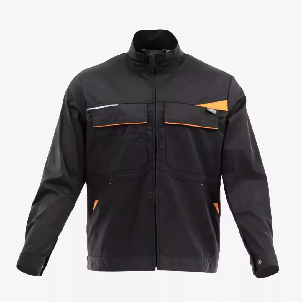 Modern megjelenésű, strapabíró, rugalmas anyagból készült cipzáras Sara munkáskabát, praktikus zsebekkel, és fényvisszaverő elemekkel ellátva.