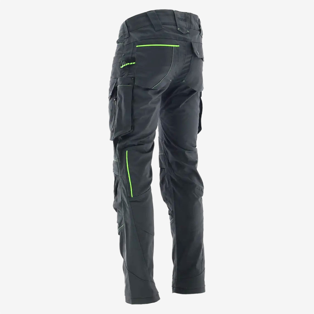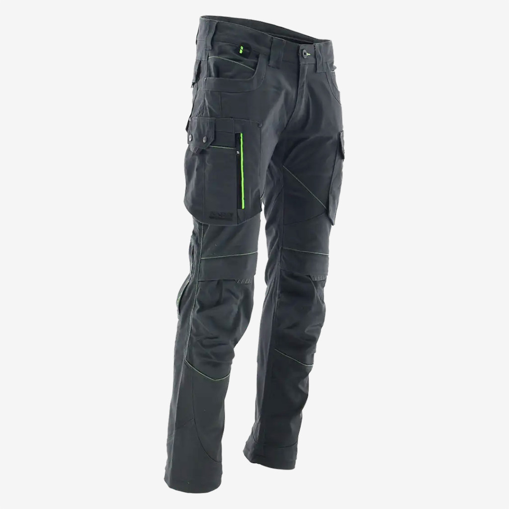 A nadrág elején két hagyományos zseb található, melyek a mindennapi használati tárgyak, például telefon vagy pénztárca tárolására szolgálnak. A combokon elhelyezett funkcionális combzsebek bő kialakításuknak köszönhetően nagyobb méretű szerszámok vagy kiegészítők tárolására is alkalmasak, így a legfontosabb eszközök mindig kéznél lehetnek. A hátsó részen két további zseb található, melyek a kényelmes tárolás mellett a nadrág megjelenését is kiegészítik.