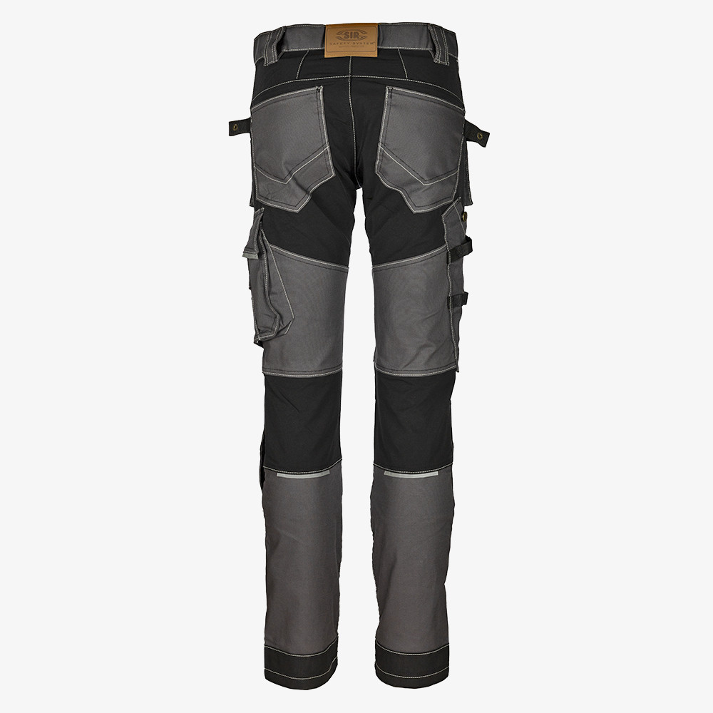 • Elülső háromdimenziós zsebek, hátsó zsebek, szerszámtartó hurkok