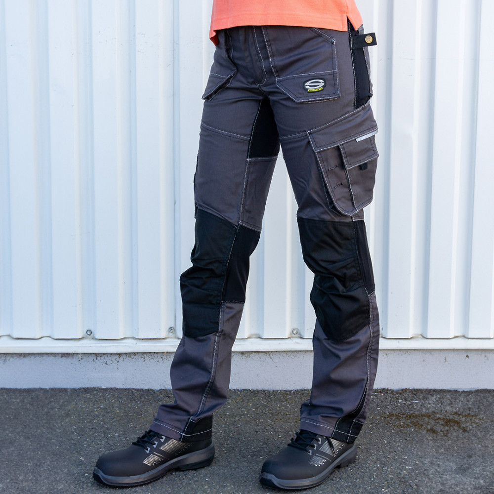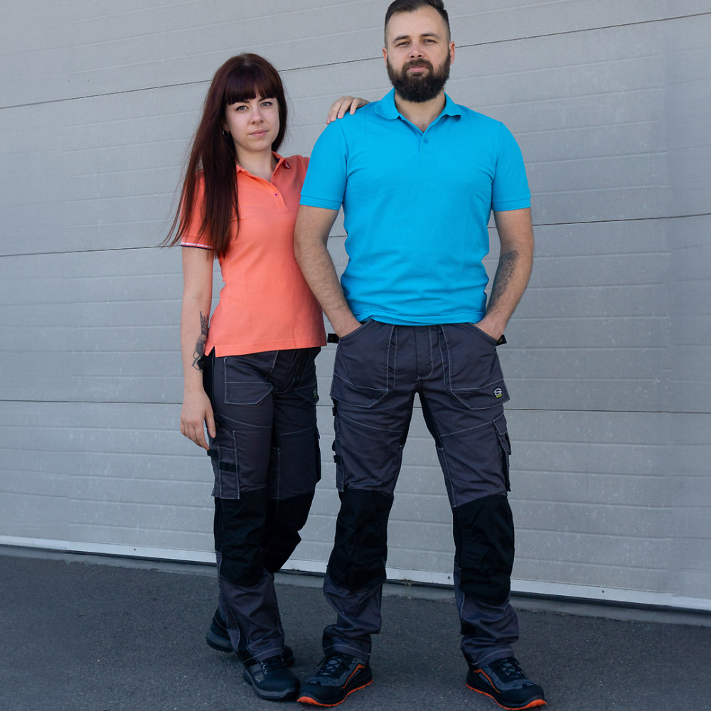 Tartós és kopásálló vászonszövetből készült, kontrasztos színösszeállítású és modern megjelenésű Sir Safety munkaruha deréknadrág.