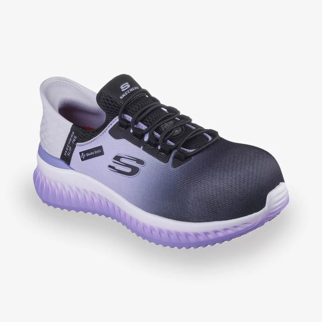 Sportos, egyedi megjelenésű, szintetikus textil felsőrésszel készülő Skechers női munkavédelmi cipő. Szuperkényelmes, léghűtéses, memóriahabos talpbetéttel és kompozit orrvédelemmel. A talp továbbá antisztatikus, csúszásmentes, olajoknak is ellenálló kialakítású.