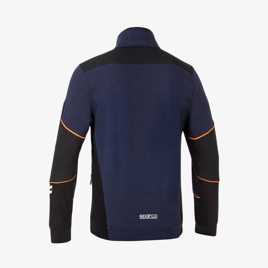 A Sparco Tech Full Zip egy kiváló minőségű cipzáras pulóver, amelyet a kényelem és a funkcionalitás jegyében terveztek. Az erősített ujjak kopásálló betétekkel rendelkeznek, biztosítva a tartósságot és a hosszú élettartamot. A magas láthatóságú fényvisszaverő csíkok növelik a biztonságot gyenge fényviszonyok között.
