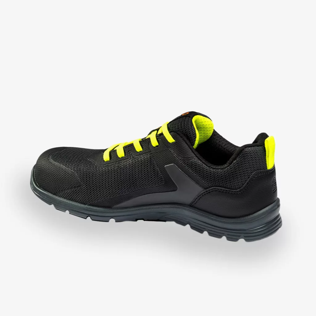 A munkavédelmi cipő felső része úgy lett kialakítva, hogy a dinamikus munkavégzés során is maximális kényelmet és biztonságot nyújtson, ezért egy mikroperforált textil és karcálló 3D HF betétek kombinációját használták fel, amelyek együttesen biztosítják a szellőzést és a tartósságot. Mivel a textil részek elősegítik a láb szellőzését, a szintetikus megerősítések pedig növelik a kopásállóságot, a cipő hosszú távon is megőrzi kiváló állapotát, miközben a láb komfortérzete is megmarad.