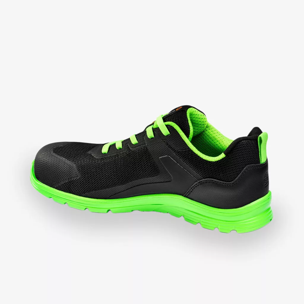 A munkavédelmi cipő felső része úgy lett kialakítva, hogy a dinamikus munkavégzés során is maximális kényelmet és biztonságot nyújtson, ezért egy mikroperforált textil és karcálló 3D HF betétek kombinációját használták fel, amelyek együttesen biztosítják a szellőzést és a tartósságot. Mivel a textil részek elősegítik a láb szellőzését, a szintetikus megerősítések pedig növelik a kopásállóságot, a cipő hosszú távon is megőrzi kiváló állapotát, miközben a láb komfortérzete is megmarad.
