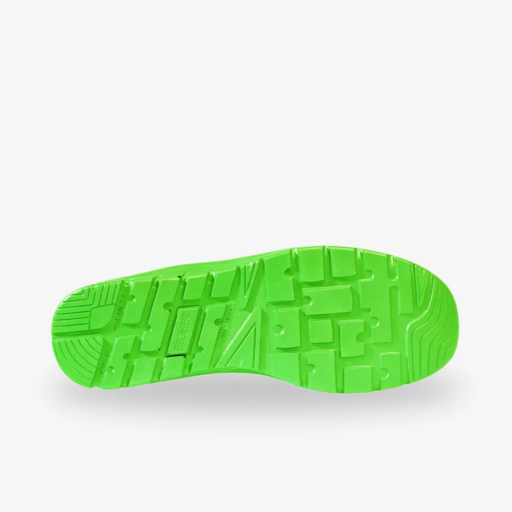 A munkavédelmi cipő talpszerkezete egyrétegű poliuretán anyagból (single-density PU) készült, amely egyszerre biztosítja a lábbeli rendkívüli könnyedségét és a magas szintű antisztatikus védelmet. A sarokrészbe integrált energiaelnyelő kialakítás hatékonyan tompítja a járás közben keletkező ütődéseket, megóvva a lábat és az ízületeket a terheléstől. A speciális anyagösszetételnek és mintázatának köszönhetően a talp kiváló csúszásmentességet garantál, emellett teljes mértékben olajálló, így stabil és biztonságos munkavégzést tesz lehetővé még az igényesebb ipari környezetben is.