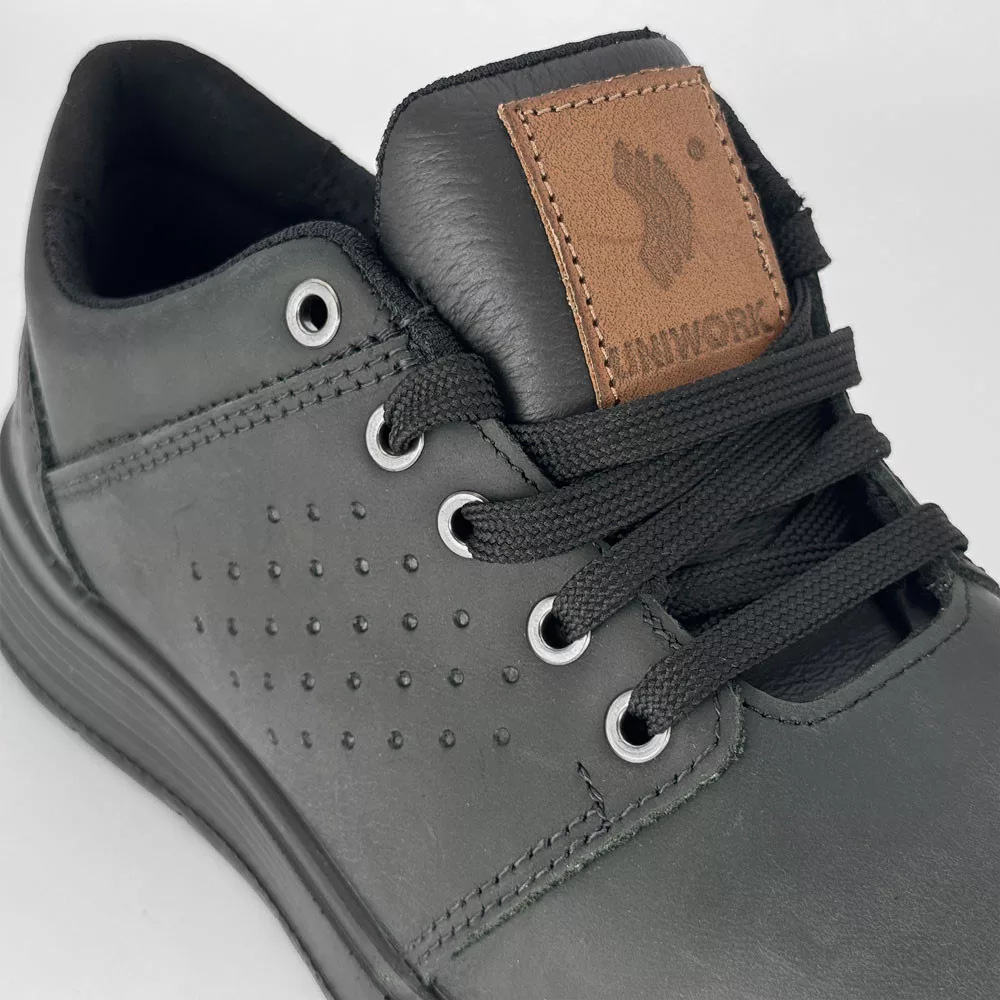 Prémium minőségű nubuk bőr felső résszel rendelkező, modern megjelenésű Uniwork munkavédelmi cipő. A kiváló komfortérzet mellett magasfokú védelmet nyújt a kompozit orr- és talpvédelem, valamint a csúszásmentes talpkialakítás.
