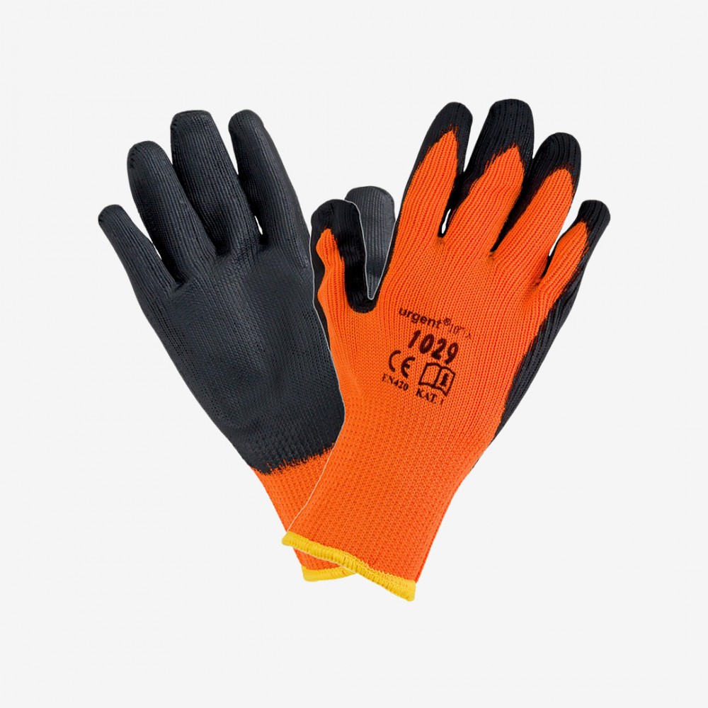 A tenyérrészen és az ujjakon latex bevonattal ellátott, strapabíró poliészter anyagból készült védőkesztyű.