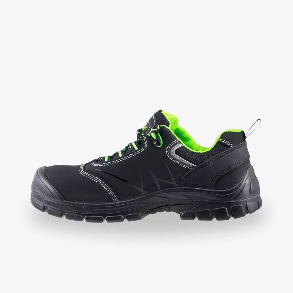 A cipő felső része strapabíró nubuk marhabőrből készül, melyet emelt, kopásálló poliuretán orr- és sarokrész egészít ki, ami növeli a munkavédelmi cipő élettartamát. Az erősített varrások szintén elősegítik a lábbeli hosszabb élettartamát. Az erős textil fűzővezetők jól követik a lábfej mozgását, ezáltal stabil tartást és rögzítést biztosítanak.