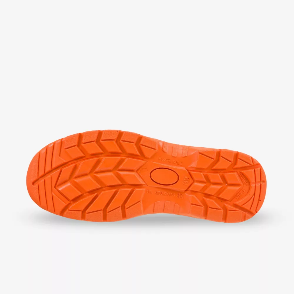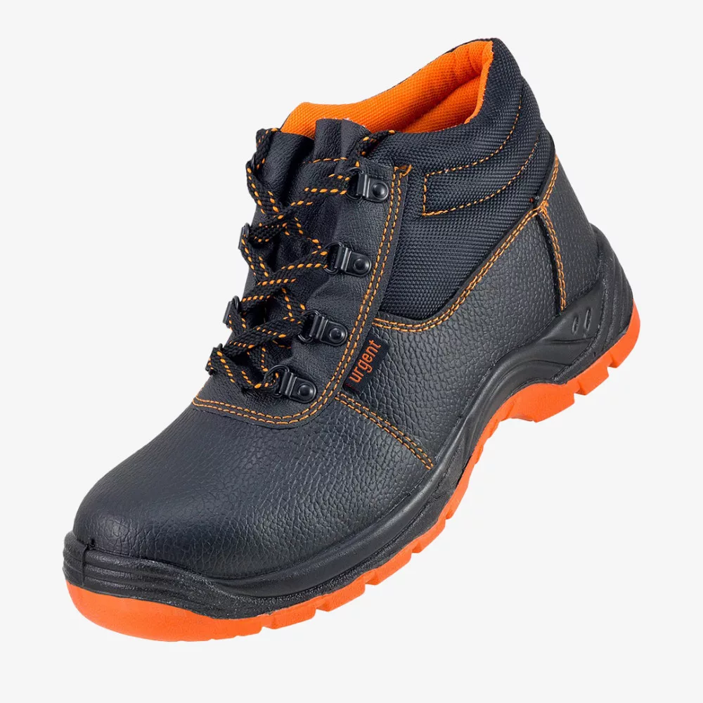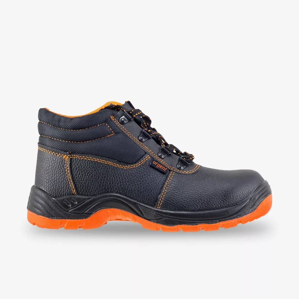 Az Urgent Angelo felső rész tartós préselt marhabőrből készül, melyet mérsékelten emelt, kopásálló poliuretán orrész egészít ki. Sarokrészén egy extra rétegnyi bőrt találunk, ami további erősítésként szolgál, növeli a munkavédelmi cipő élettartamát.