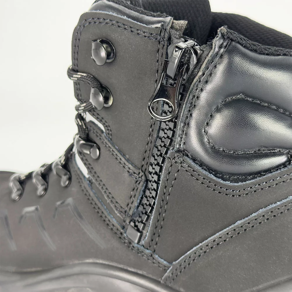 Megfelelő komfortérzetet és biztos tartást nyújt, akár egész napos munkavégzés során is a párnázott, textil boka- és nyelvrész. A fűzővezetők stabil tartást és rögzítést biztosítanak, míg a felső részen elhelyezett gyorskioldó kapcsok segítenek a könnyebb le- és felvételben.