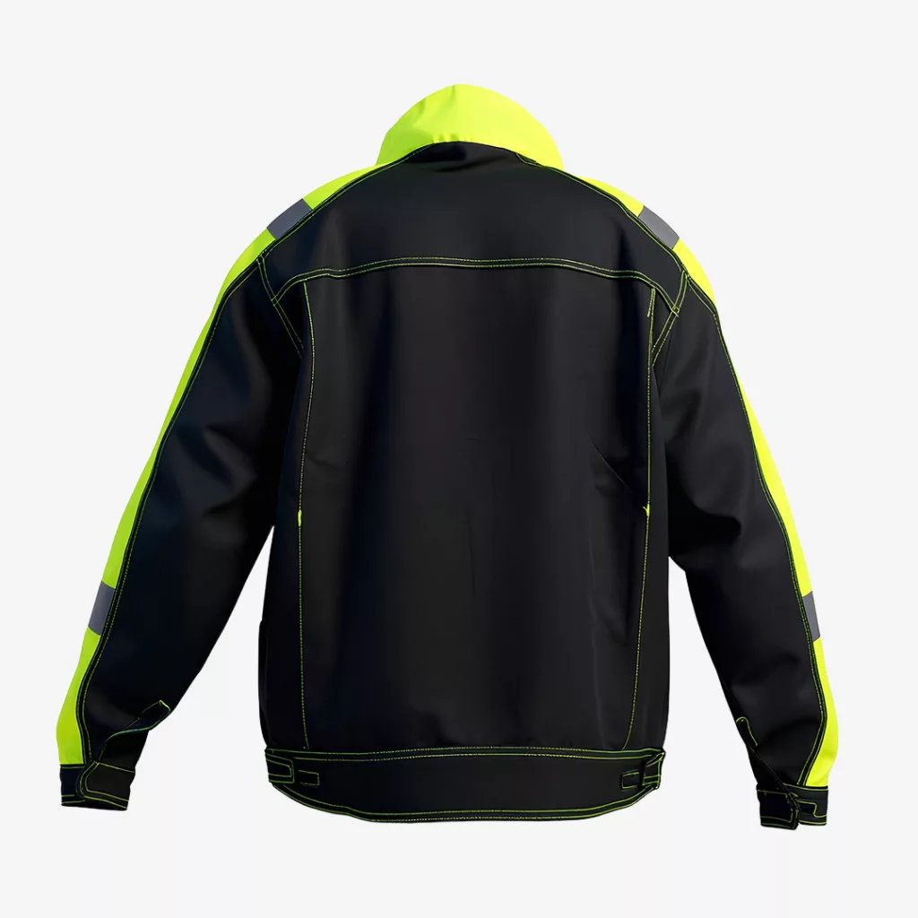 Kiemelkedő kényelemmel rendelkező munkáskabát, láthatósági színben, mely praktikus tárolózsebekkel és tépőzárral állítható mandzsettával készült.