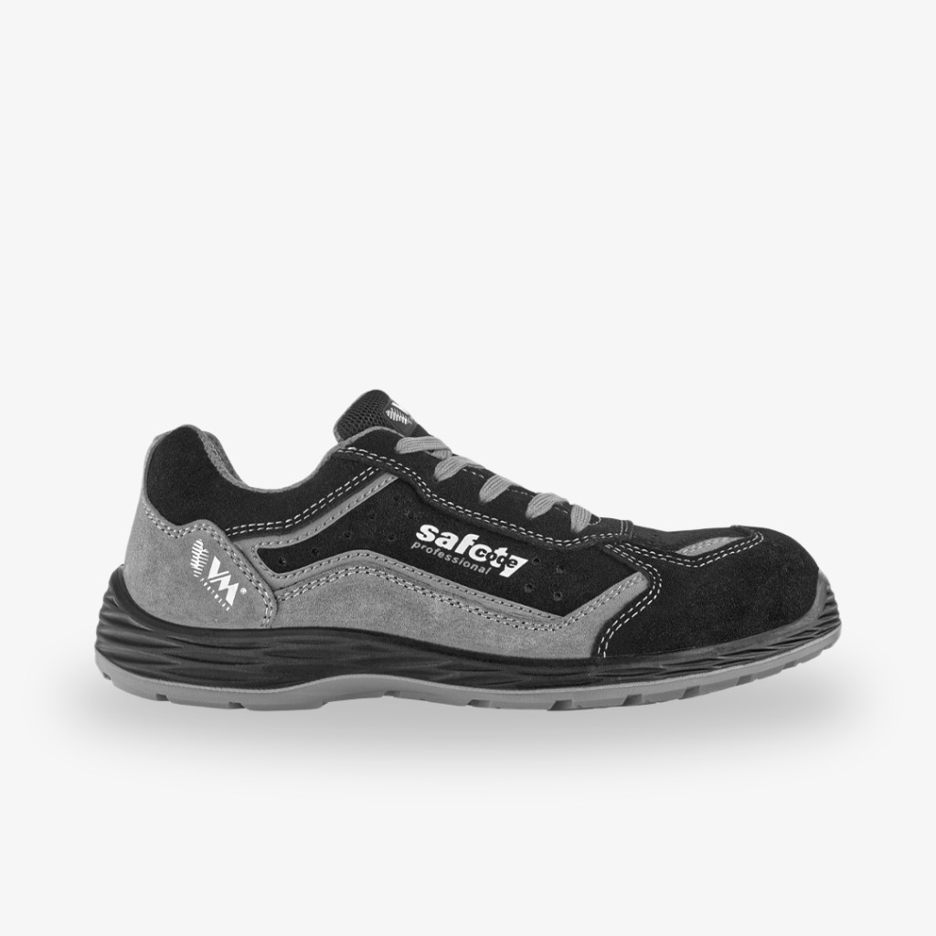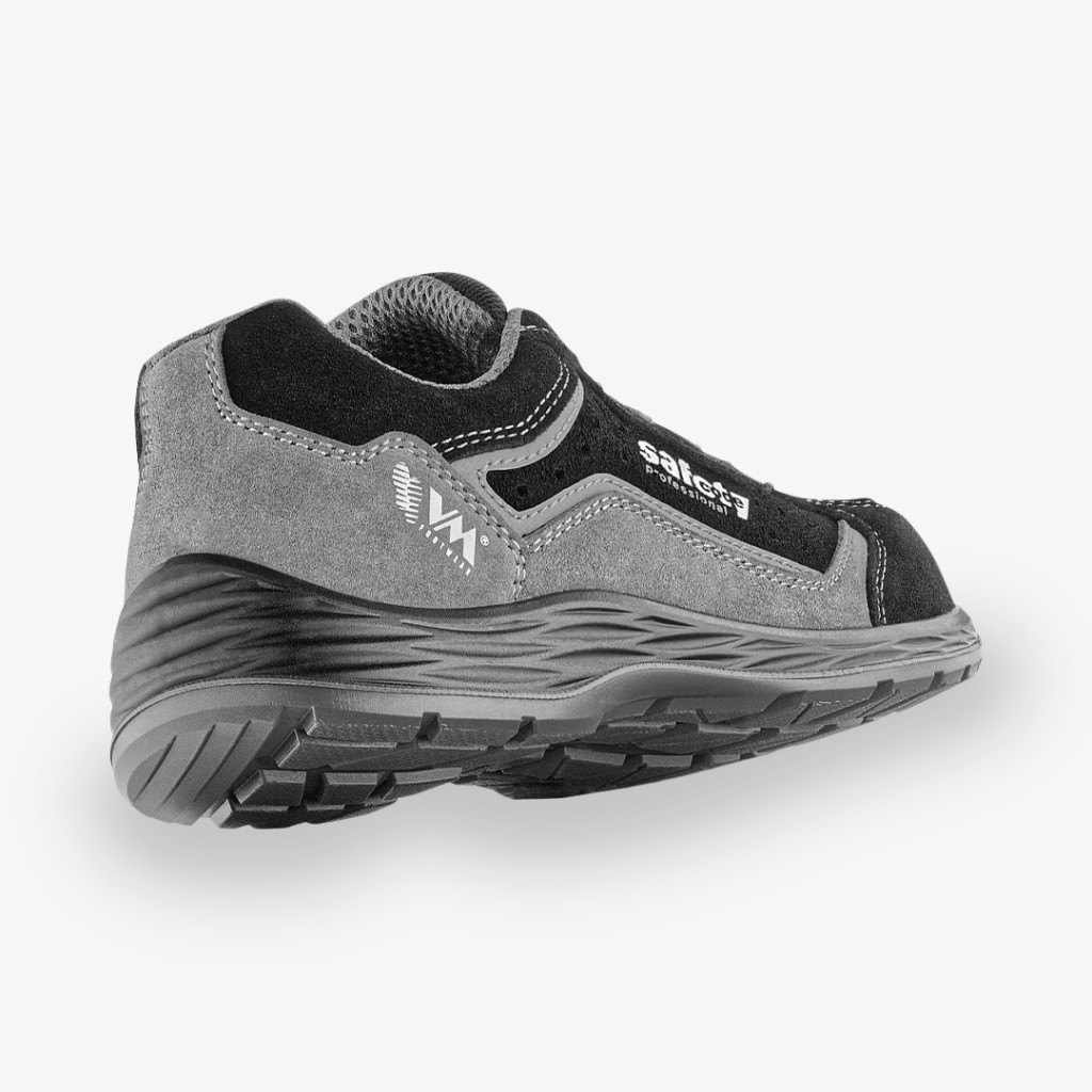 A cipő felső része szálcsiszolt VELOR marhabőrből készült, amely 1,6-1,8 mm vastagságú, és dupla varrásokkal lett megerősítve, jelentősen megnövelve a lábbeli élettartamát. A fűzővezetők stabil tartást és tökéletes rögzítést tesznek lehetővé, biztosítva a cipő illeszkedését és stabilitását a munkavégzés során. Az oldalt elhelyezett fényvisszaverő elemek jobb láthatóságot tesznek lehetővé, és növelik a biztonságot.