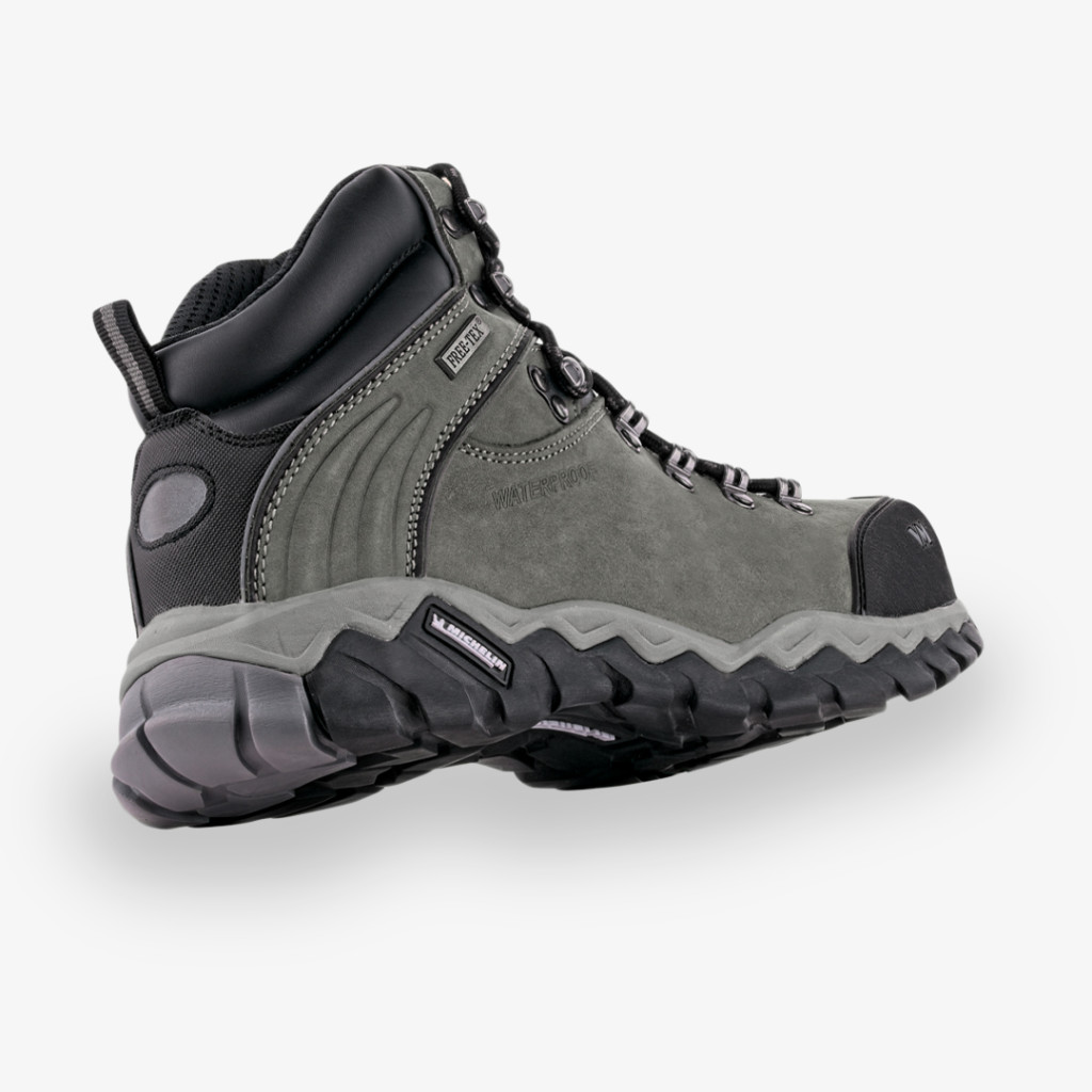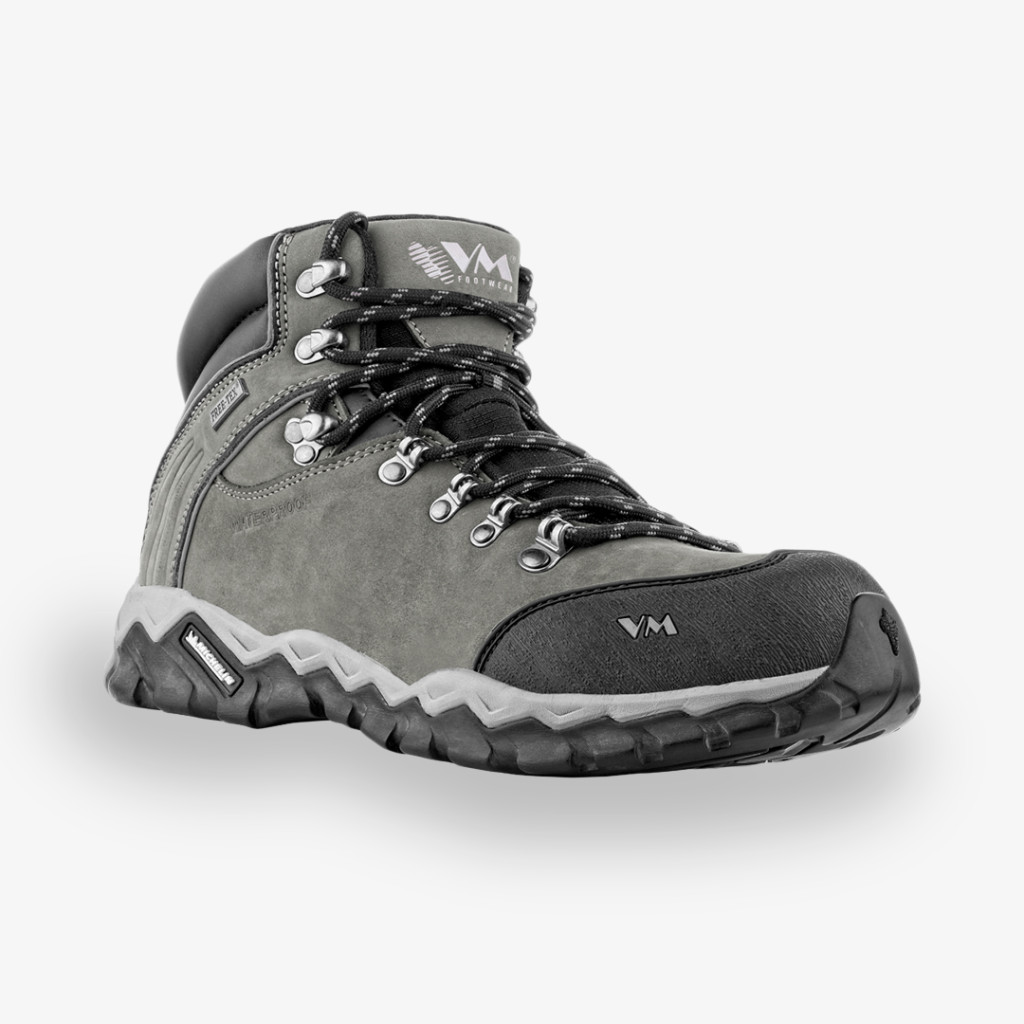 Prémium minűségű hidrofób nubuk bőr felsőrésszel készülő VM munkavédelmi bakancs. Egyedi megoldásai révén kiemelkedő kényelmet biztosít, akár egésznapos használat esetén is. A csúszásmentes és olajálló talp pedig biztonságot nyújt használójának.