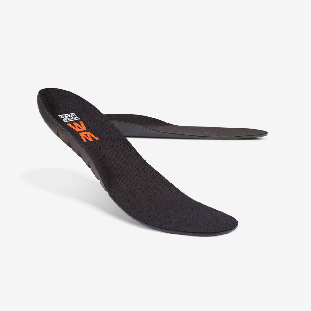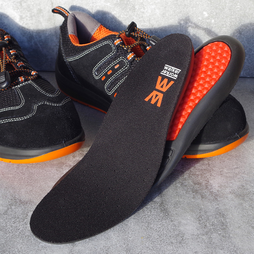 Textillel bevont, Worker Walker PU hab talpbetét, mely TPE gélpárnákkal van ellátva a saroknál és lábközépnél, melyek elnyelik az ütéseket és stabilizálják a sarok helyzetét. Az elülső perforáció optimális szellőzést biztosít, elvezeti az izzadságot, és a csúszásmentes alsó réteg megakadályozza az elmozdulást a cipőben.